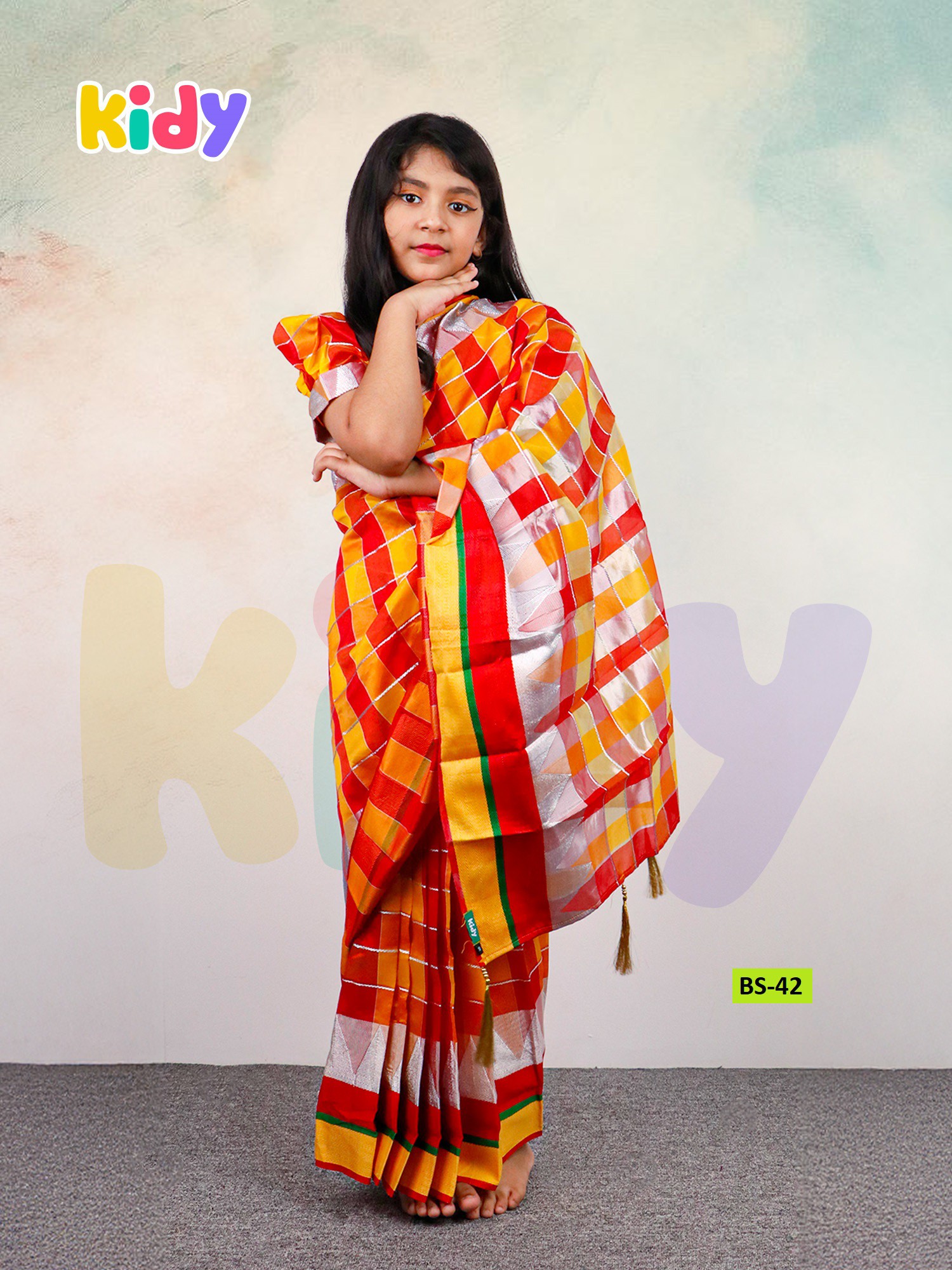 BS-42 বেবি রেডি চেক সিল্ক শাড়ি ।